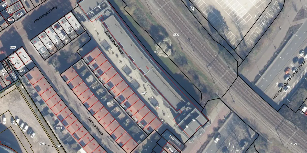 Het adres ligt op het perceel HLM01-E-6591, dat zich in de kadastrale gemeente Haarlem bevindt. De oppervlakte van het perceel is 3740 m². Dat is groter dan gemiddeld in Haarlem, waar de gemiddelde perceeloppervlakte op 328,33 m² ligt. Het grootste perceel in de kadastrale gemeente is 13,9 ha. Het kleinste perceel heeft een oppervlakte van 0 m². Op het perceel liggen in totaal 55 adressen. De huidige grenzen van het perceel zijn digitaal in de Basisregistratie Kadaster (BRK) geregistreerd op 29-04-2008.