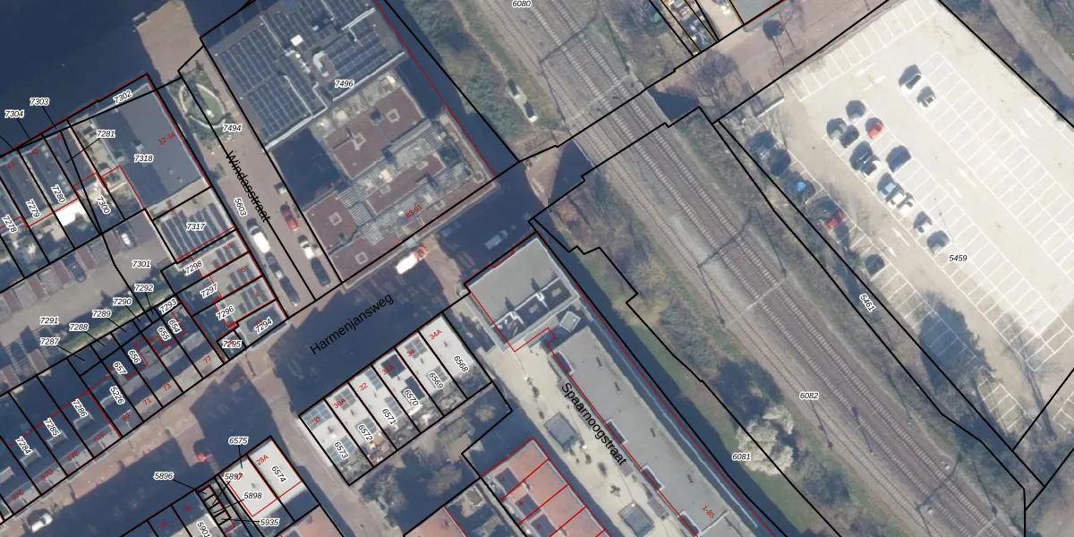 Het adres is gelegen op perceel 6591 in de sectie E en de kadastrale gemeente Haarlem. De kadastrale aanduiding is aldus HLM01-E-6591. Het perceel is met 3740 m² relatief groot. Het gemiddelde ligt in de kadastrale gemeente Haarlem op 328,33 m². Het grootste perceel in de kadastrale gemeente is 13,9 ha. Het kleinste perceel heeft een oppervlakte van 0 m². Op het perceel liggen in totaal 55 adressen. De huidige grenzen van het perceel zijn digitaal in de Basisregistratie Kadaster (BRK) geregistreerd op 29-04-2008.