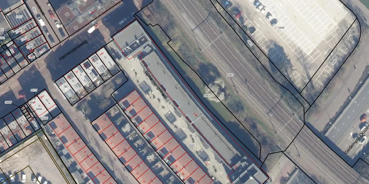Het adres is gelegen op perceel 6591 in de sectie E en de kadastrale gemeente Haarlem. De kadastrale aanduiding is aldus HLM01-E-6591. Het perceel is met 3740 m² relatief groot. Het gemiddelde ligt in de kadastrale gemeente Haarlem op 328,33 m². Het kleinste perceel in de kadastrale gemeente is 0 m² groot. De grootste perceeloppervlakte is 13,9 ha. Op het perceel zijn 55 adressen aanwezig. In de Basisregistratie Kadaster (BRK) werden de grenzen van het perceel geregistreerd op 29-04-2008.