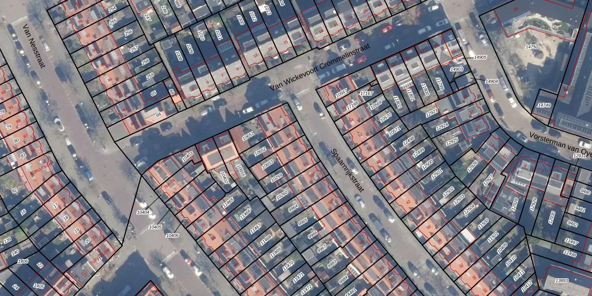 Gebruik de zoekbalk of klik op een perceel voor informatie over de adressen binnen dit perceel.