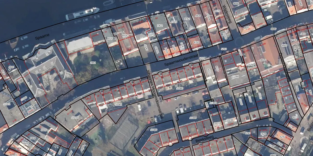 Spaarnwouderstraat 22 is gelegen op kadastraal perceel HLM01D10382. Deze kadastrale aanduiding is uniek en wordt gebruikt door het Kadaster om eigendomsrechten en andere zakelijke rechten vast te leggen. Het perceel maakt onderdeel uit van de kadastrale gemeente Haarlem.