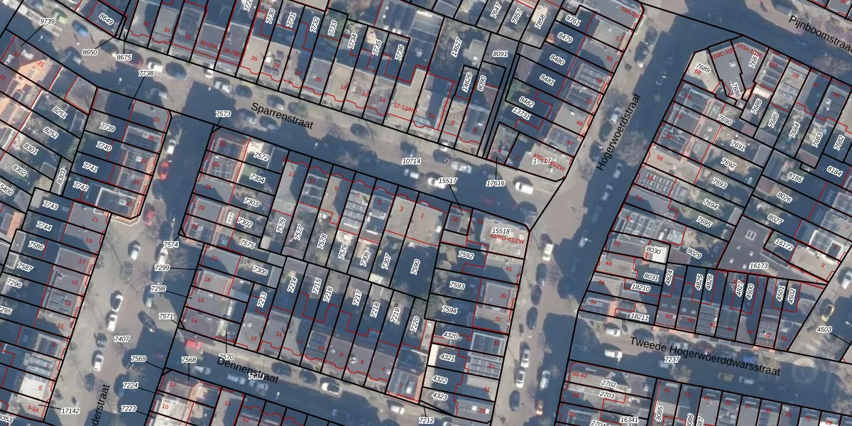 Gebruik de zoekbalk of klik op een perceel voor informatie over de adressen binnen dit perceel.