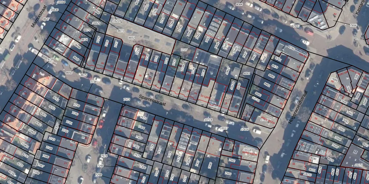 Sparrenstraat 16 is gelegen op kadastraal perceel STN01B7735. Deze kadastrale aanduiding is uniek en wordt gebruikt door het Kadaster om eigendomsrechten en andere zakelijke rechten vast te leggen. Het perceel maakt onderdeel uit van de kadastrale gemeente Schoten.