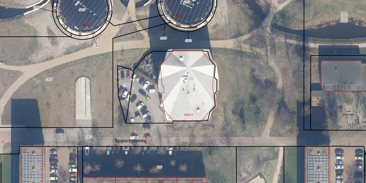 Het perceel waarop Spijkerboorweg 505 staat heeft een oppervlakte van 1710 m². Dit is een zeer groot perceel. De perceeloppervlakte wordt geregistreerd door het Kadaster. Gedetailleerde informatie over de maten van dit perceel kunt u vinden in het rapport Kadastrale kaart met maatvoering van Spijkerboorweg 505.
