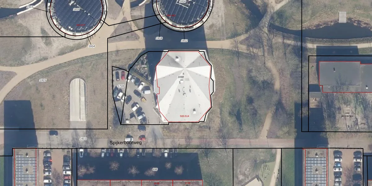 Het perceel waarop Spijkerboorweg 507 staat heeft een oppervlakte van 1710 m². Dit is een zeer groot perceel. De perceeloppervlakte wordt geregistreerd door het Kadaster. Gedetailleerde informatie over de maten van dit perceel kunt u vinden in het rapport Kadastrale kaart met maatvoering van Spijkerboorweg 507.