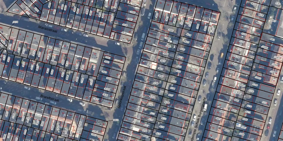 Gebruik de zoekbalk of klik op een perceel voor informatie over de adressen binnen dit perceel.