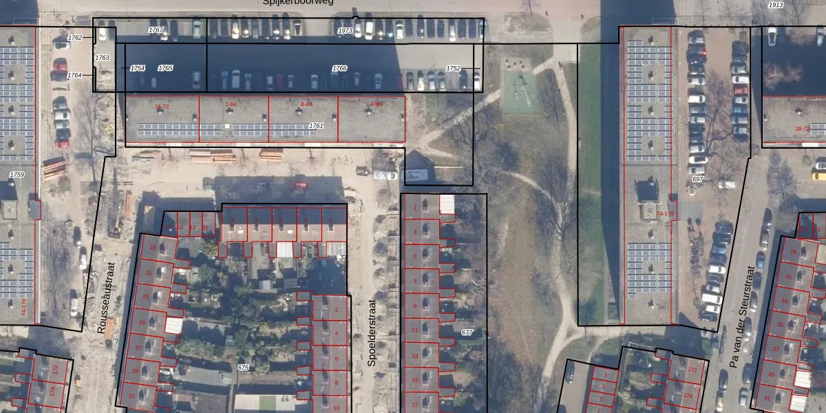 Spoelderstraat 1 is gelegen op kadastraal perceel HLM02X677. Deze kadastrale aanduiding is uniek en wordt gebruikt door het Kadaster om eigendomsrechten en andere zakelijke rechten vast te leggen. Het perceel maakt onderdeel uit van de kadastrale gemeente Haarlem.