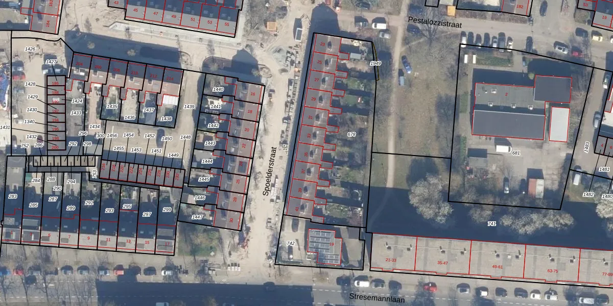 Het perceel waarop Spoelderstraat 35 staat heeft een oppervlakte van 1475 m². Dit is een zeer groot perceel. De perceeloppervlakte wordt geregistreerd door het Kadaster. Gedetailleerde informatie over de maten van dit perceel kunt u vinden in het rapport Kadastrale kaart met maatvoering van Spoelderstraat 35.