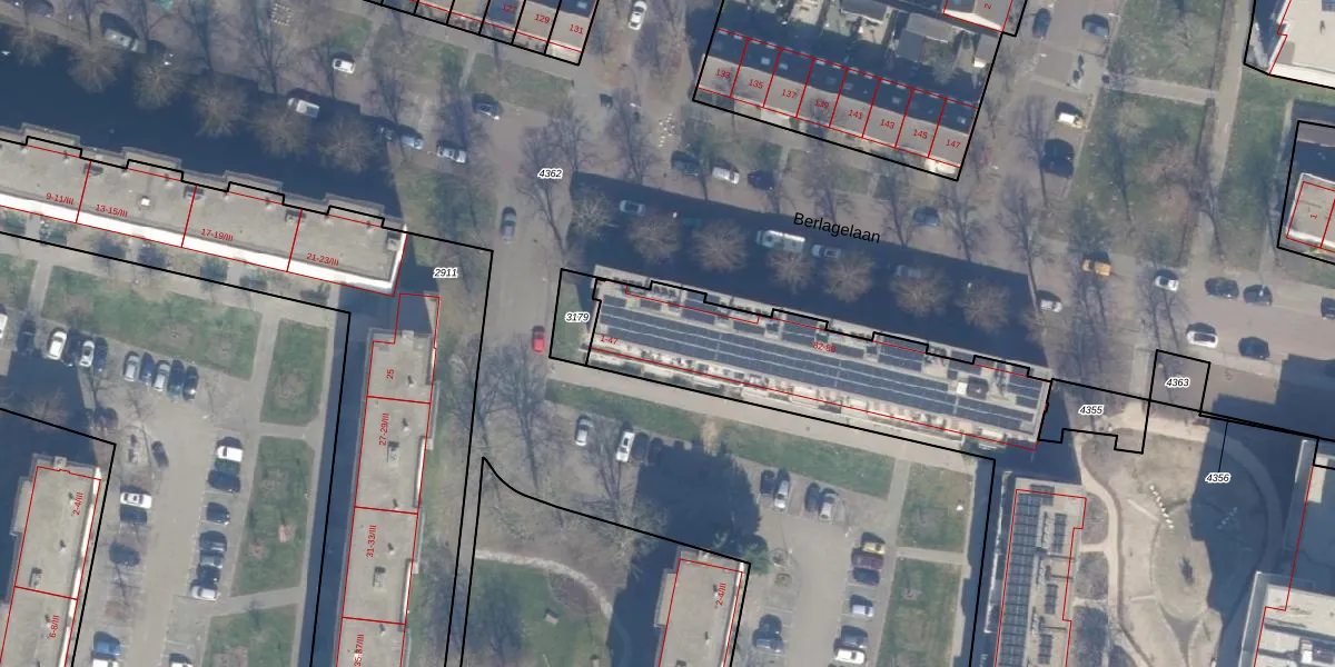 Het perceel waarop het adres ligt is HLM02-P-4354. De afkorting 'HLM02' staat voor kadastrale gemeente Haarlem. Het perceel is met 8493 m² relatief groot. Het gemiddelde ligt in de kadastrale gemeente Haarlem op 1123,97 m². Het kleinste perceel in de kadastrale gemeente is 0 m² groot. De grootste perceeloppervlakte is 46,4 ha. Op het perceel zijn 180 adressen aanwezig. In de Basisregistratie Kadaster (BRK) werden de grenzen van het perceel geregistreerd op 18-03-2025.