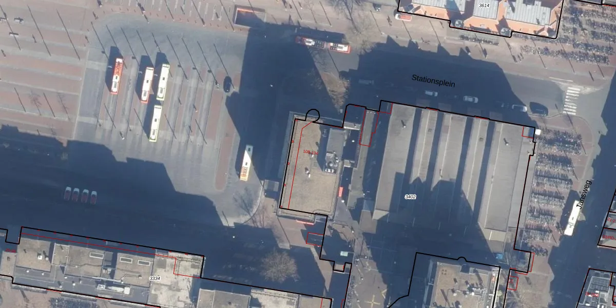Het perceel waarop Stationsplein 108 staat heeft een oppervlakte van 4272 m². Dit is een zeer groot perceel. De perceeloppervlakte wordt geregistreerd door het Kadaster. Gedetailleerde informatie over de maten van dit perceel kunt u vinden in het rapport Kadastrale kaart met maatvoering van Stationsplein 108.