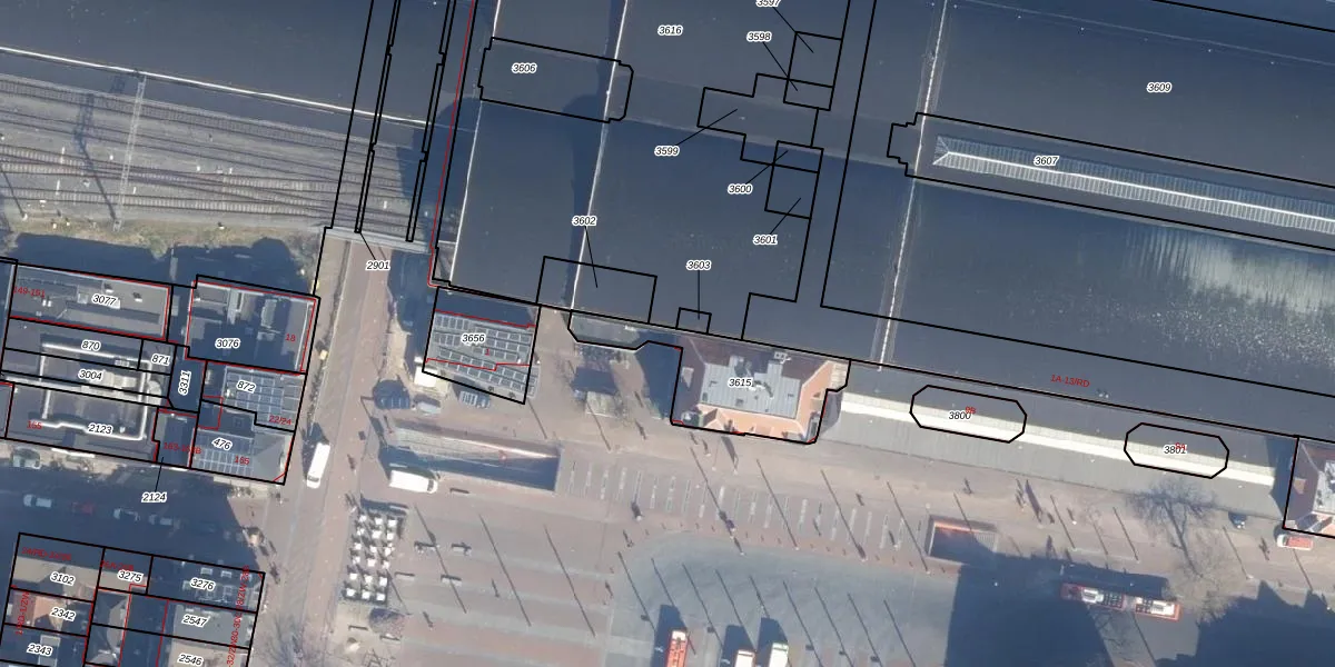 Het perceel waarop Stationsplein 3-RD staat heeft een oppervlakte van 385 m². Dit is een groot perceel. De perceeloppervlakte wordt geregistreerd door het Kadaster. Gedetailleerde informatie over de maten van dit perceel kunt u vinden in het rapport Kadastrale kaart met maatvoering van Stationsplein 3-RD.