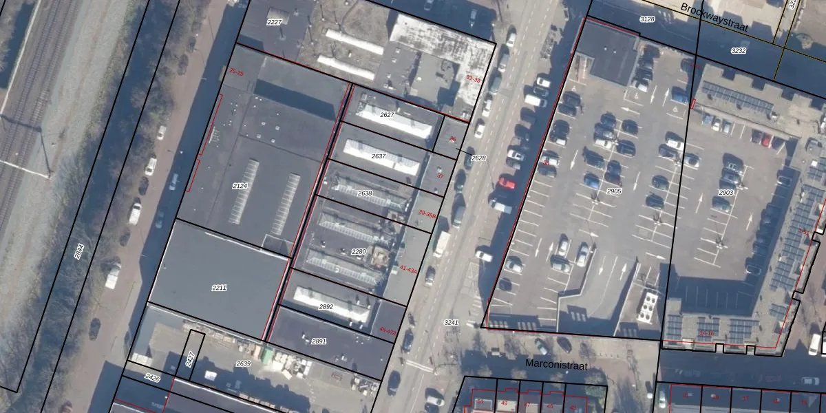 Het adres is gelegen op perceel 2638 in de sectie S en de kadastrale gemeente Haarlem. De kadastrale aanduiding is aldus HLM02-S-2638. Het perceel is kleiner dan gemiddeld in Haarlem. Het perceel is 283 m² groot, terwijl het gemiddelde ligt op 1124,3 m². De grootste perceeloppervlakte in de kadastrale gemeente is 46,4 ha. De kleinste oppervlakte bedraagt 0 m². Op het perceel liggen in totaal 3 adressen. De laatste wijziging in het de Basisregistratie Kadaster (BRK) was op 13-07-2010.