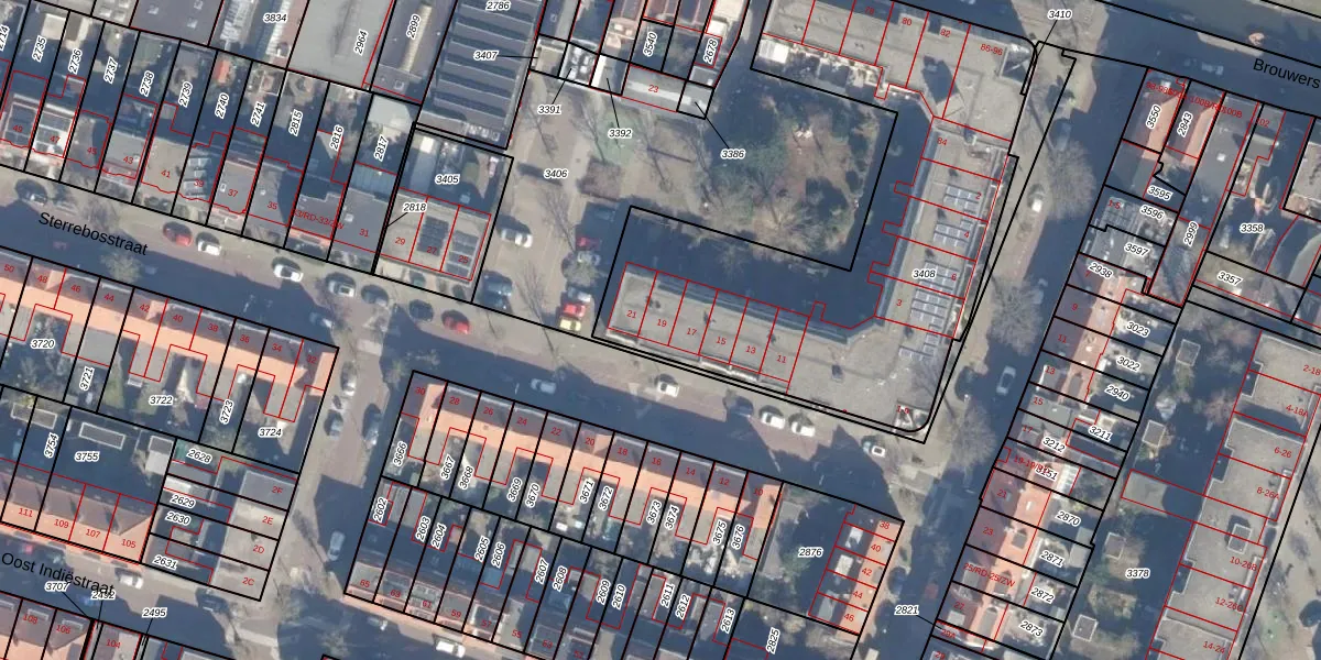 Sterrebosstraat 19 is gelegen op kadastraal perceel HLM01H3408. Deze kadastrale aanduiding is uniek en wordt gebruikt door het Kadaster om eigendomsrechten en andere zakelijke rechten vast te leggen. Het perceel maakt onderdeel uit van de kadastrale gemeente Haarlem.