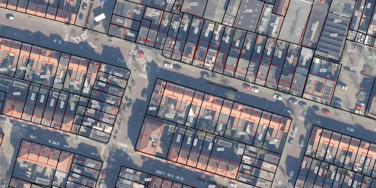 Het perceel waarop Sterrebosstraat 52 staat heeft een oppervlakte van 318 m². Dit is een groot perceel. De perceeloppervlakte wordt geregistreerd door het Kadaster. Gedetailleerde informatie over de maten van dit perceel kunt u vinden in het rapport Kadastrale kaart met maatvoering van Sterrebosstraat 52.