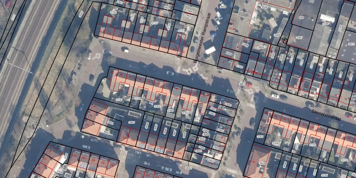 Gebruik de zoekbalk of klik op een perceel voor informatie over de adressen binnen dit perceel.