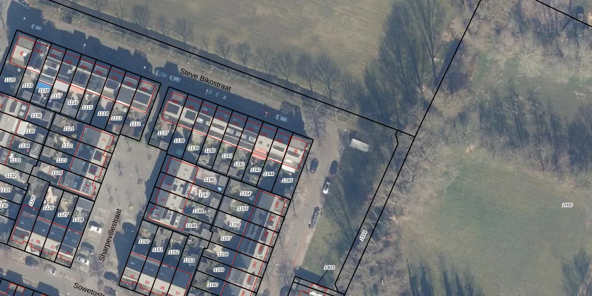 Gebruik de zoekbalk of klik op een perceel voor informatie over de adressen binnen dit perceel.