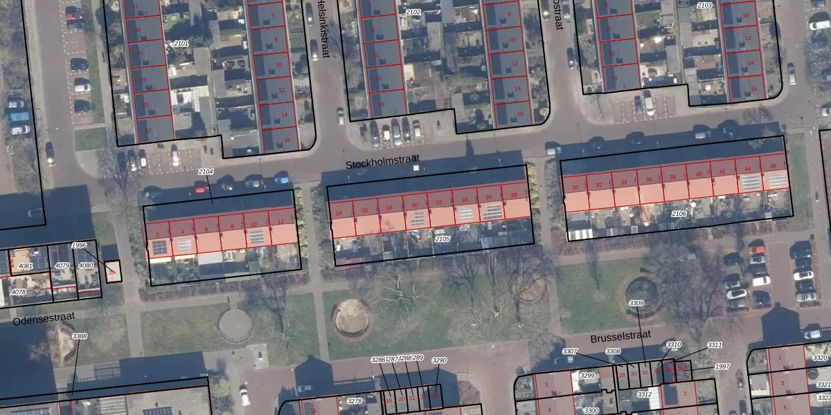 Het perceel waarop Stockholmstraat 20 staat heeft een oppervlakte van 935 m². Dit is een groot perceel. De perceeloppervlakte wordt geregistreerd door het Kadaster. Gedetailleerde informatie over de maten van dit perceel kunt u vinden in het rapport Kadastrale kaart met maatvoering van Stockholmstraat 20.