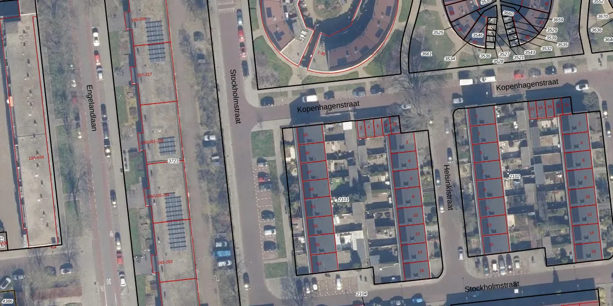 Stockholmstraat 45 is gelegen op kadastraal perceel HLM02Y2101. Deze kadastrale aanduiding is uniek en wordt gebruikt door het Kadaster om eigendomsrechten en andere zakelijke rechten vast te leggen. Het perceel maakt onderdeel uit van de kadastrale gemeente Haarlem.