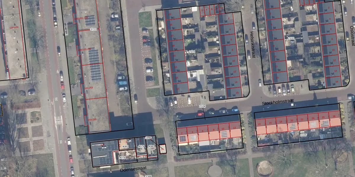 Het perceel waarop Stockholmstraat 57 staat heeft een oppervlakte van 2400 m². Dit is een zeer groot perceel. De perceeloppervlakte wordt geregistreerd door het Kadaster. Gedetailleerde informatie over de maten van dit perceel kunt u vinden in het rapport Kadastrale kaart met maatvoering van Stockholmstraat 57.