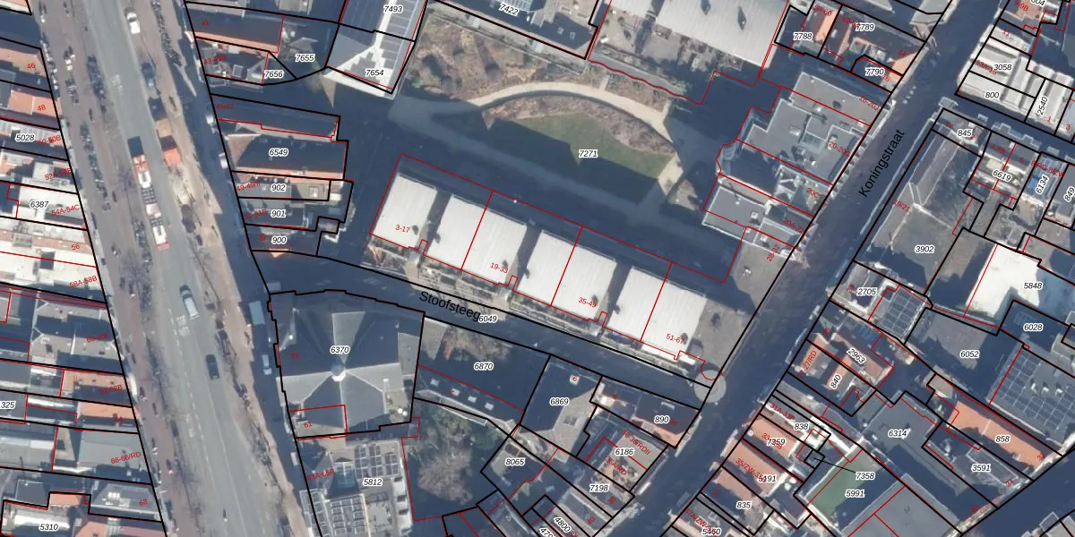 Het perceel waarop Stoofsteeg 23 staat heeft een oppervlakte van 5275 m². Dit is een zeer groot perceel. De perceeloppervlakte wordt geregistreerd door het Kadaster. Gedetailleerde informatie over de maten van dit perceel kunt u vinden in het rapport Kadastrale kaart met maatvoering van Stoofsteeg 23.