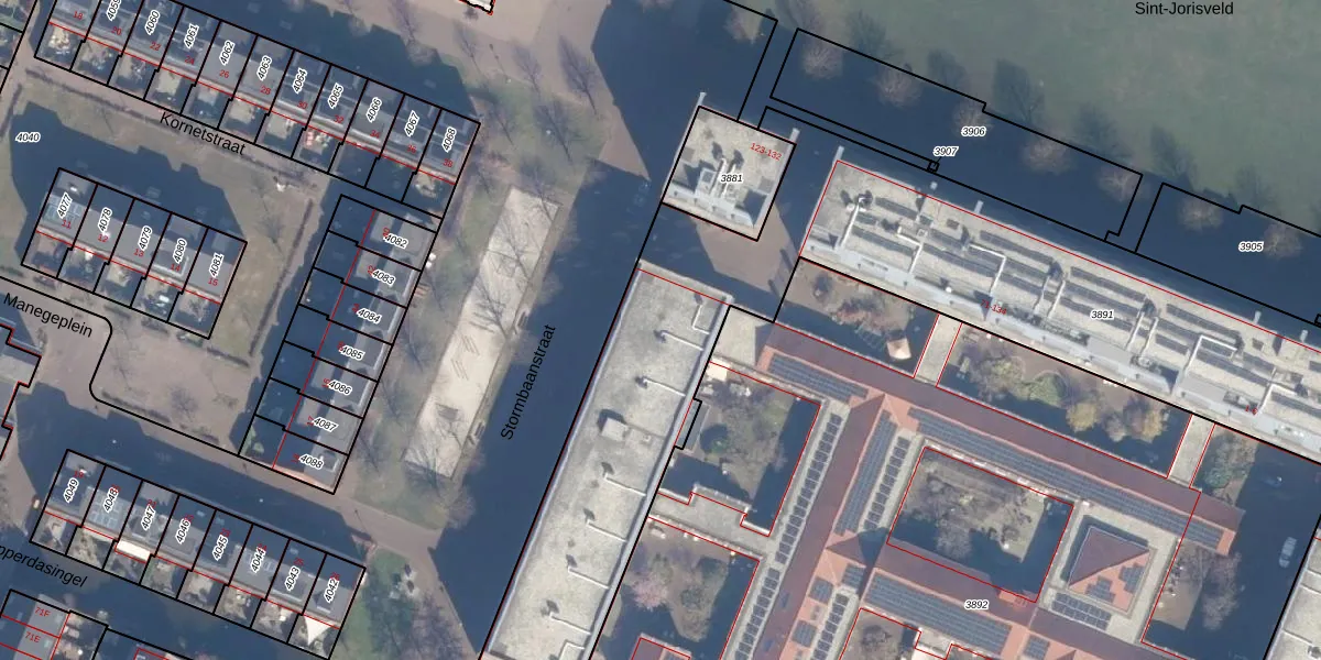 Het perceel waarop Stormbaanstraat 16 staat heeft een oppervlakte van 4466 m². Dit is een zeer groot perceel. De perceeloppervlakte wordt geregistreerd door het Kadaster. Gedetailleerde informatie over de maten van dit perceel kunt u vinden in het rapport Kadastrale kaart met maatvoering van Stormbaanstraat 16.