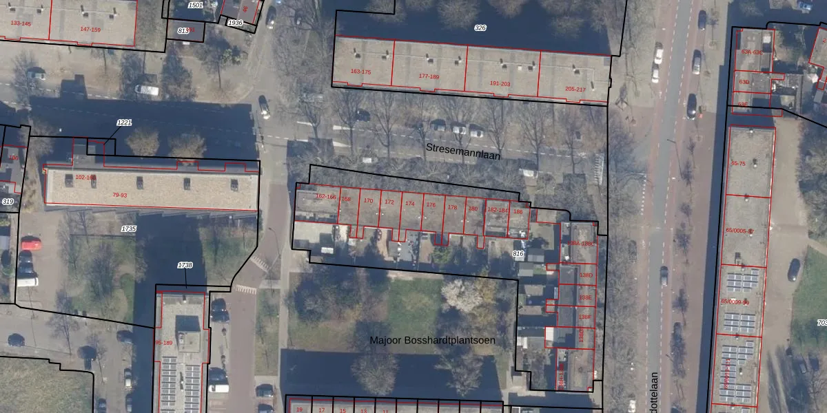 Stresemannlaan 174 is gelegen op kadastraal perceel HLM02X816. Deze kadastrale aanduiding is uniek en wordt gebruikt door het Kadaster om eigendomsrechten en andere zakelijke rechten vast te leggen. Het perceel maakt onderdeel uit van de kadastrale gemeente Haarlem.