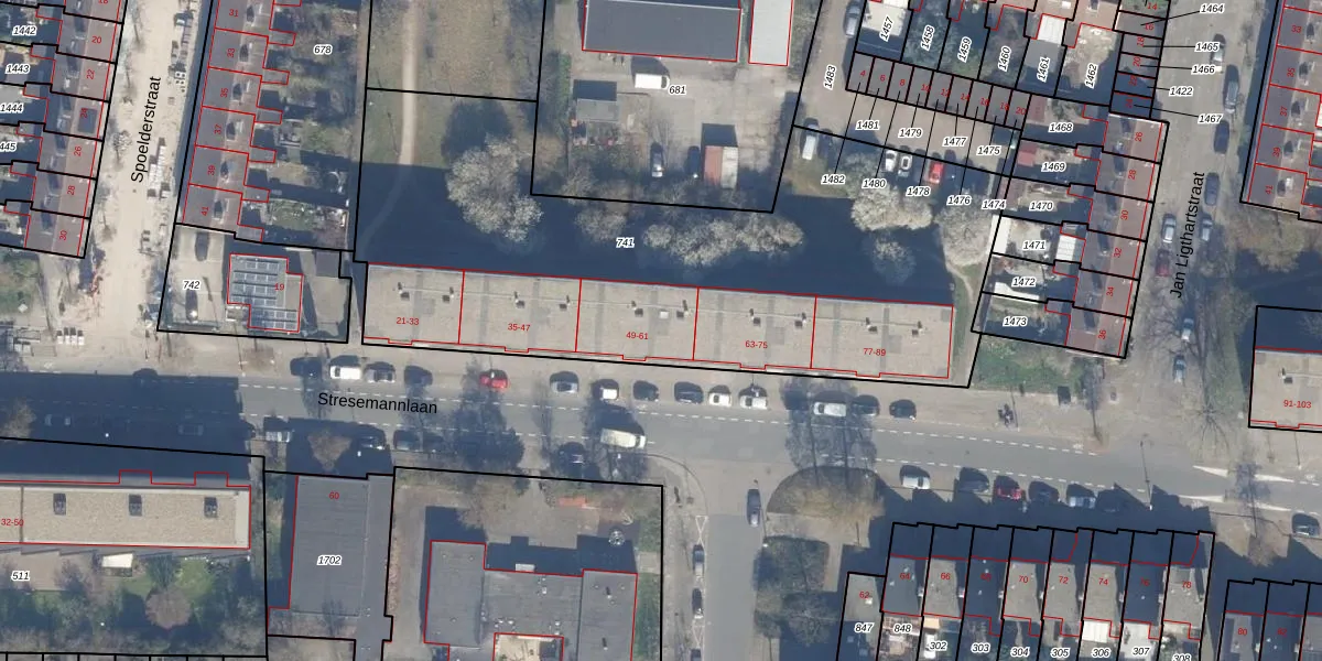 Stresemannlaan 57 is gelegen op kadastraal perceel HLM02X741. Deze kadastrale aanduiding is uniek en wordt gebruikt door het Kadaster om eigendomsrechten en andere zakelijke rechten vast te leggen. Het perceel maakt onderdeel uit van de kadastrale gemeente Haarlem.