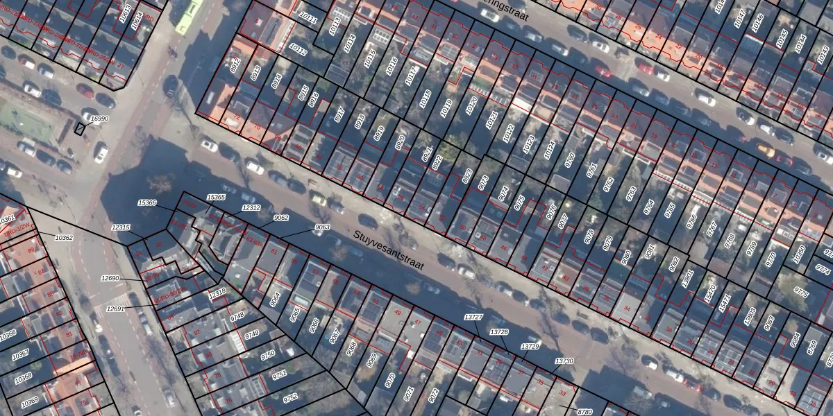 Het perceel waarop Stuyvesantstraat 54 staat heeft een oppervlakte van 114 m². Dit is een middelgroot perceel. De perceeloppervlakte wordt geregistreerd door het Kadaster. Gedetailleerde informatie over de maten van dit perceel kunt u vinden in het rapport Kadastrale kaart met maatvoering van Stuyvesantstraat 54.