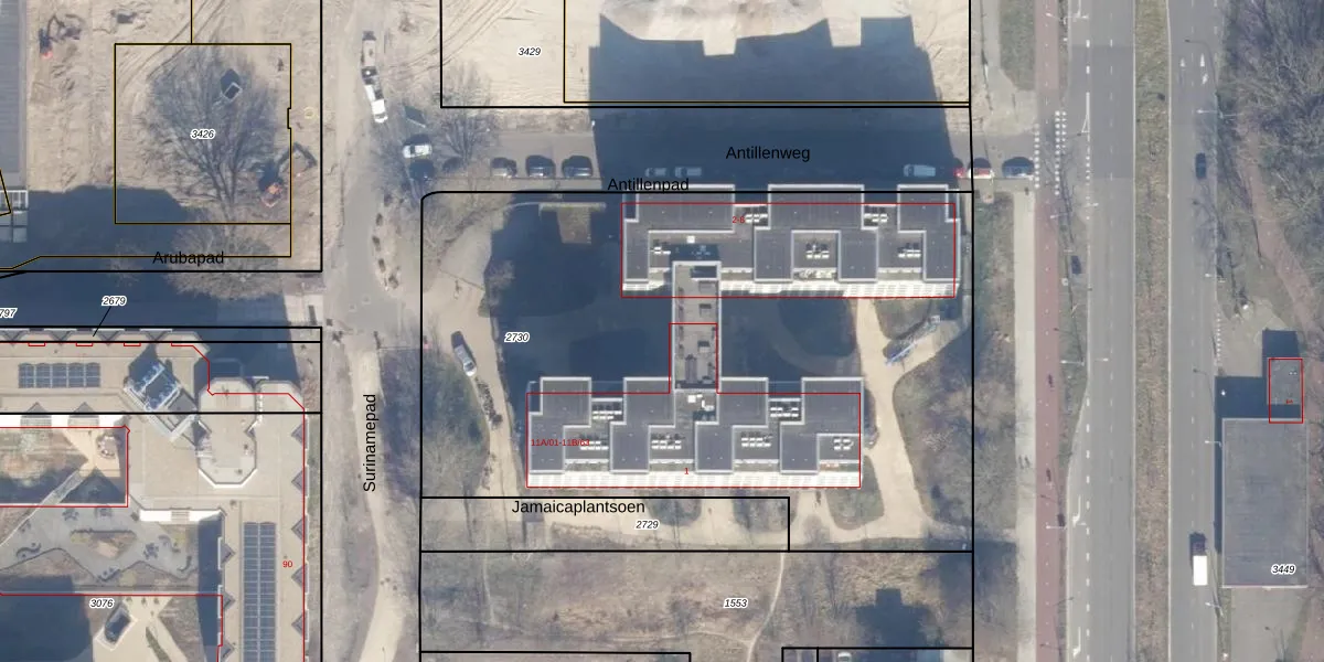 Het perceel waarop Surinamepad 11-A-50 staat heeft een oppervlakte van 4100 m². Dit is een zeer groot perceel. De perceeloppervlakte wordt geregistreerd door het Kadaster. Gedetailleerde informatie over de maten van dit perceel kunt u vinden in het rapport Kadastrale kaart met maatvoering van Surinamepad 11-A-50.