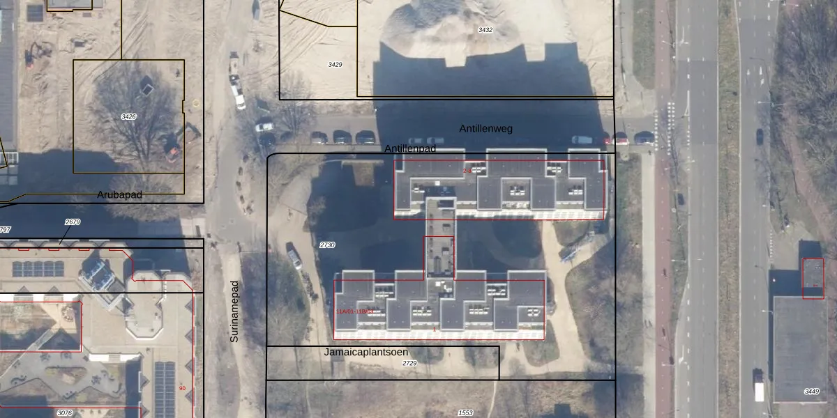 Het perceel waarop Surinamepad 11-A-57 staat heeft een oppervlakte van 4100 m². Dit is een zeer groot perceel. De perceeloppervlakte wordt geregistreerd door het Kadaster. Gedetailleerde informatie over de maten van dit perceel kunt u vinden in het rapport Kadastrale kaart met maatvoering van Surinamepad 11-A-57.