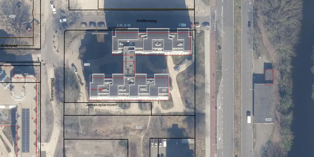 Het perceel waarop Surinamepad 11-B-02 staat heeft een oppervlakte van 4100 m². Dit is een zeer groot perceel. De perceeloppervlakte wordt geregistreerd door het Kadaster. Gedetailleerde informatie over de maten van dit perceel kunt u vinden in het rapport Kadastrale kaart met maatvoering van Surinamepad 11-B-02.