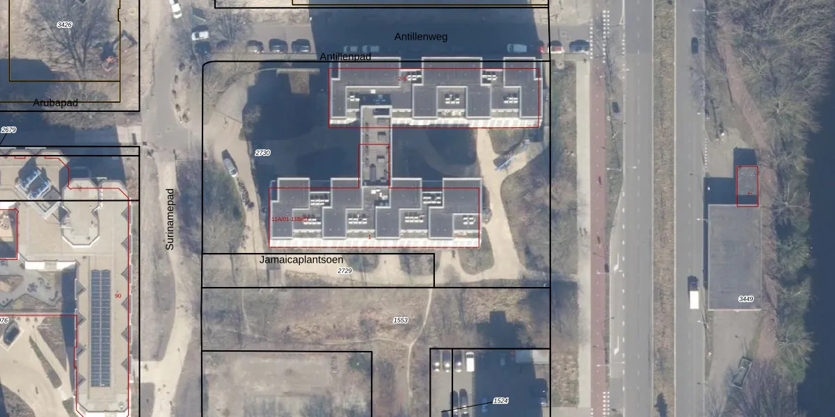 Het perceel waarop Surinamepad 11-B-22 staat heeft een oppervlakte van 4100 m². Dit is een zeer groot perceel. De perceeloppervlakte wordt geregistreerd door het Kadaster. Gedetailleerde informatie over de maten van dit perceel kunt u vinden in het rapport Kadastrale kaart met maatvoering van Surinamepad 11-B-22.