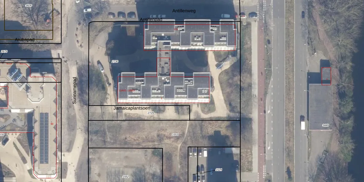 Het perceel waarop Surinamepad 11-B-26 staat heeft een oppervlakte van 4100 m². Dit is een zeer groot perceel. De perceeloppervlakte wordt geregistreerd door het Kadaster. Gedetailleerde informatie over de maten van dit perceel kunt u vinden in het rapport Kadastrale kaart met maatvoering van Surinamepad 11-B-26.
