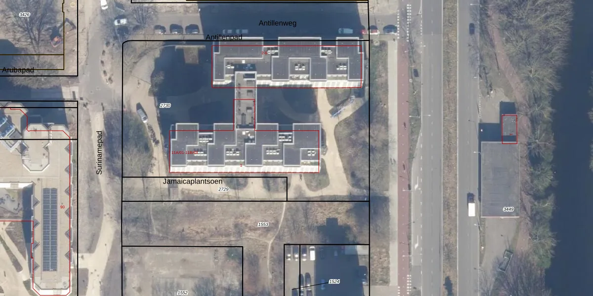 Het perceel waarop Surinamepad 11-B-34 staat heeft een oppervlakte van 4100 m². Dit is een zeer groot perceel. De perceeloppervlakte wordt geregistreerd door het Kadaster. Gedetailleerde informatie over de maten van dit perceel kunt u vinden in het rapport Kadastrale kaart met maatvoering van Surinamepad 11-B-34.