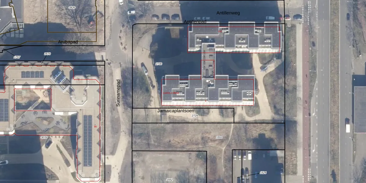Het perceel waarop Surinamepad 11-B-43 staat heeft een oppervlakte van 4100 m². Dit is een zeer groot perceel. De perceeloppervlakte wordt geregistreerd door het Kadaster. Gedetailleerde informatie over de maten van dit perceel kunt u vinden in het rapport Kadastrale kaart met maatvoering van Surinamepad 11-B-43.