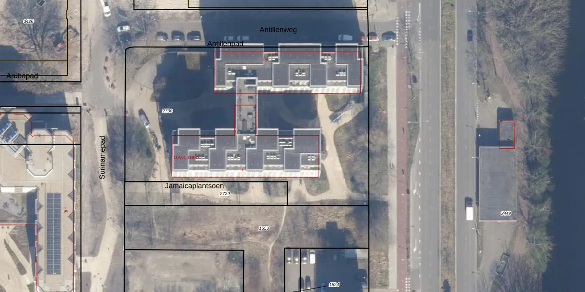 Het perceel waarop Surinamepad 11-B-47 staat heeft een oppervlakte van 4100 m². Dit is een zeer groot perceel. De perceeloppervlakte wordt geregistreerd door het Kadaster. Gedetailleerde informatie over de maten van dit perceel kunt u vinden in het rapport Kadastrale kaart met maatvoering van Surinamepad 11-B-47.