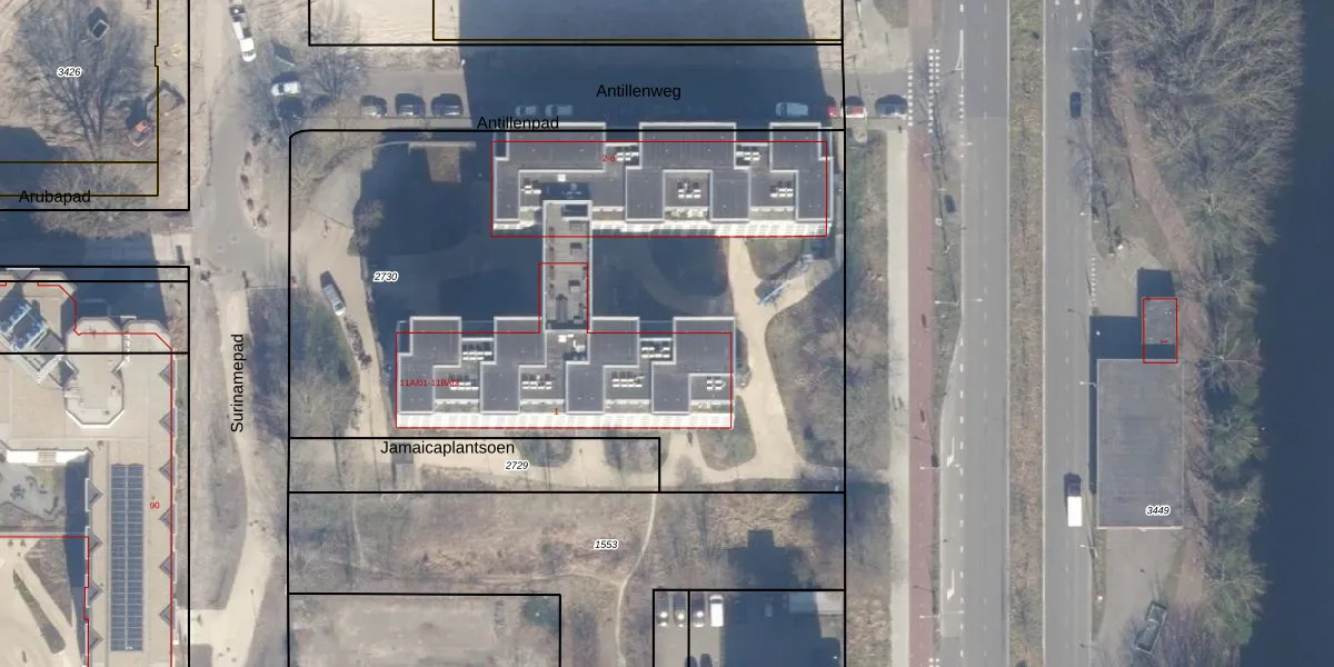 Het perceel waarop Surinamepad 11-B-56 staat heeft een oppervlakte van 4100 m². Dit is een zeer groot perceel. De perceeloppervlakte wordt geregistreerd door het Kadaster. Gedetailleerde informatie over de maten van dit perceel kunt u vinden in het rapport Kadastrale kaart met maatvoering van Surinamepad 11-B-56.
