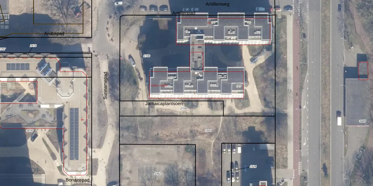 Het perceel waarop Surinamepad 11-B-59 staat heeft een oppervlakte van 4100 m². Dit is een zeer groot perceel. De perceeloppervlakte wordt geregistreerd door het Kadaster. Gedetailleerde informatie over de maten van dit perceel kunt u vinden in het rapport Kadastrale kaart met maatvoering van Surinamepad 11-B-59.