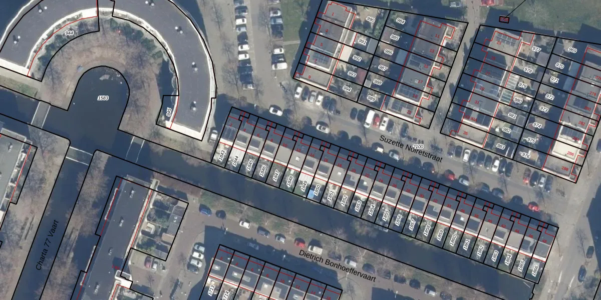 Suzette Noiretstraat 12 is gelegen op kadastraal perceel HLM02V1848. Deze kadastrale aanduiding is uniek en wordt gebruikt door het Kadaster om eigendomsrechten en andere zakelijke rechten vast te leggen. Het perceel maakt onderdeel uit van de kadastrale gemeente Haarlem.