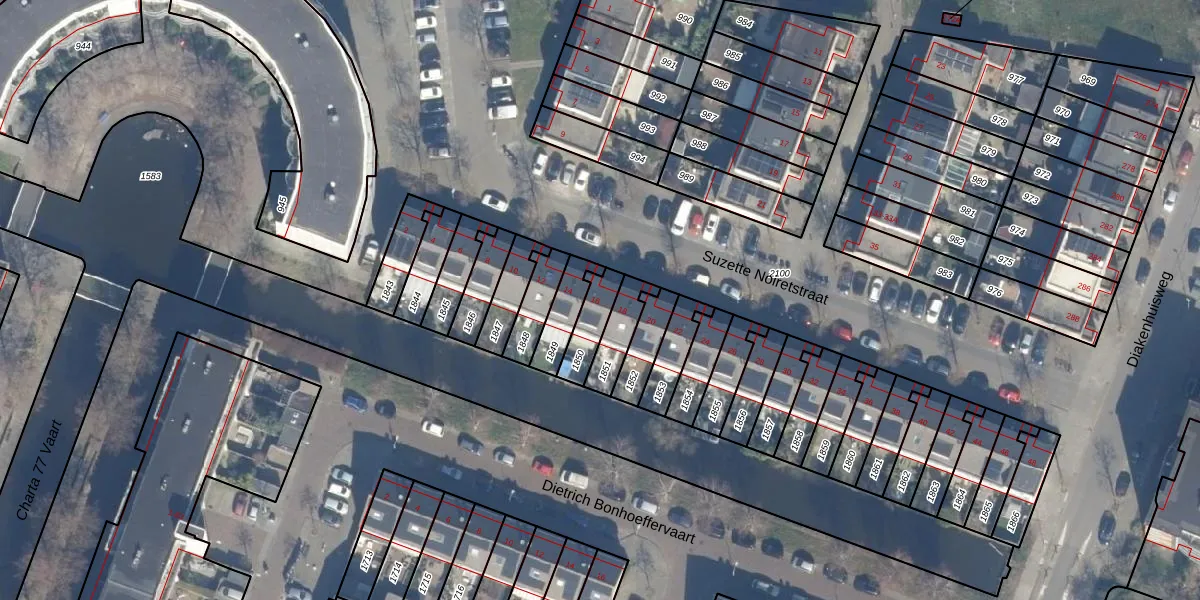 Het perceel waarop Suzette Noiretstraat 16 staat heeft een oppervlakte van 97 m². Dit is een klein perceel. De perceeloppervlakte wordt geregistreerd door het Kadaster. Gedetailleerde informatie over de maten van dit perceel kunt u vinden in het rapport Kadastrale kaart met maatvoering van Suzette Noiretstraat 16.