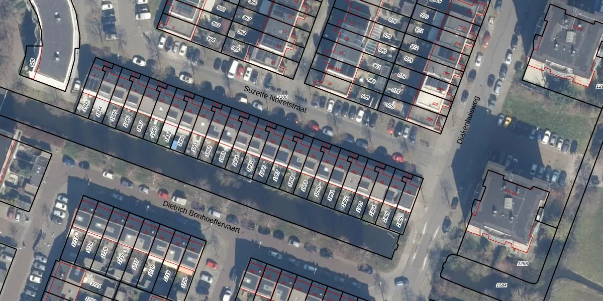 Het perceel waarop Suzette Noiretstraat 32 staat heeft een oppervlakte van 97 m². Dit is een klein perceel. De perceeloppervlakte wordt geregistreerd door het Kadaster. Gedetailleerde informatie over de maten van dit perceel kunt u vinden in het rapport Kadastrale kaart met maatvoering van Suzette Noiretstraat 32.