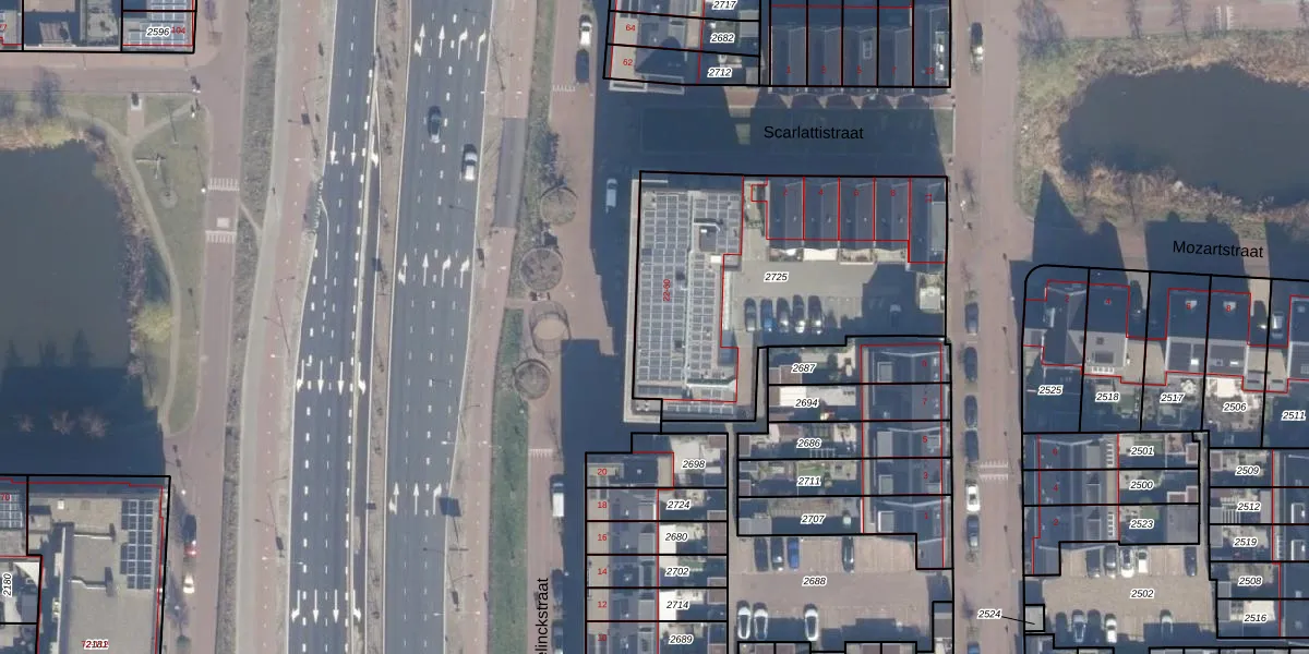 Het perceel waarop het adres ligt is HLM02-Q-2725. De afkorting 'HLM02' staat voor kadastrale gemeente Haarlem. Het perceel is met 1410 m² relatief groot. Het gemiddelde ligt in de kadastrale gemeente Haarlem op 1124,37 m². De grootste perceeloppervlakte in de kadastrale gemeente is 46,4 ha. De kleinste oppervlakte bedraagt 0 m². Op het perceel liggen in totaal 25 adressen. De huidige grenzen van het perceel zijn digitaal in de Basisregistratie Kadaster (BRK) geregistreerd op 02-11-2020.