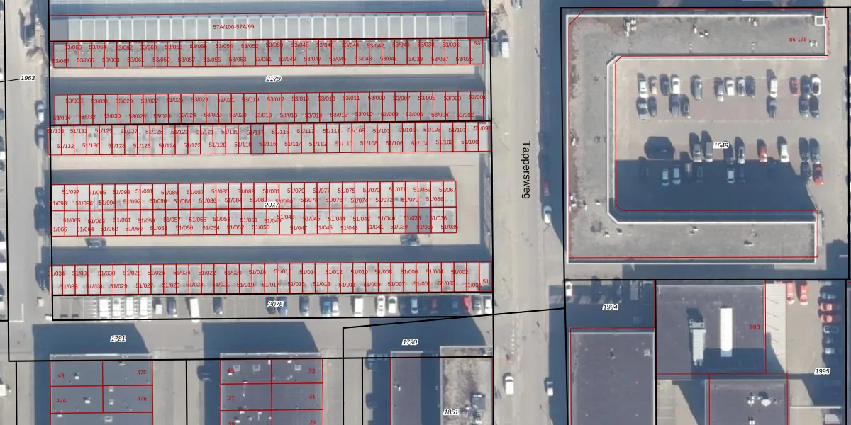 Tappersweg 51-037 is gelegen op kadastraal perceel HLM02N2077. Deze kadastrale aanduiding is uniek en wordt gebruikt door het Kadaster om eigendomsrechten en andere zakelijke rechten vast te leggen. Het perceel maakt onderdeel uit van de kadastrale gemeente Haarlem.