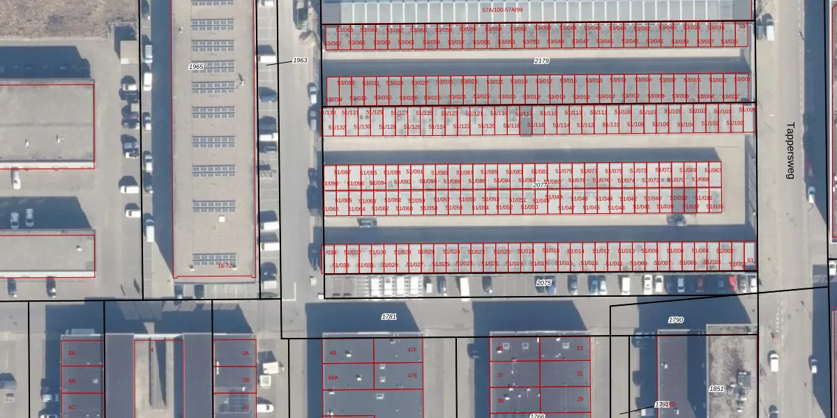Tappersweg 51-059 is gelegen op kadastraal perceel HLM02N2077. Deze kadastrale aanduiding is uniek en wordt gebruikt door het Kadaster om eigendomsrechten en andere zakelijke rechten vast te leggen. Het perceel maakt onderdeel uit van de kadastrale gemeente Haarlem.