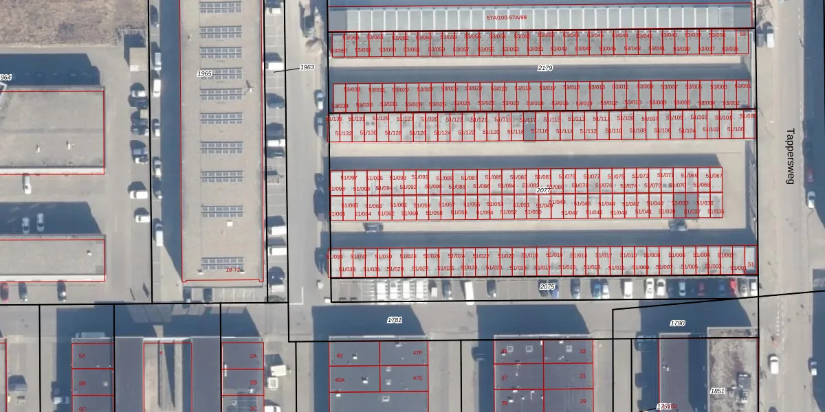 Tappersweg 51-060 is gelegen op kadastraal perceel HLM02N2077. Deze kadastrale aanduiding is uniek en wordt gebruikt door het Kadaster om eigendomsrechten en andere zakelijke rechten vast te leggen. Het perceel maakt onderdeel uit van de kadastrale gemeente Haarlem.