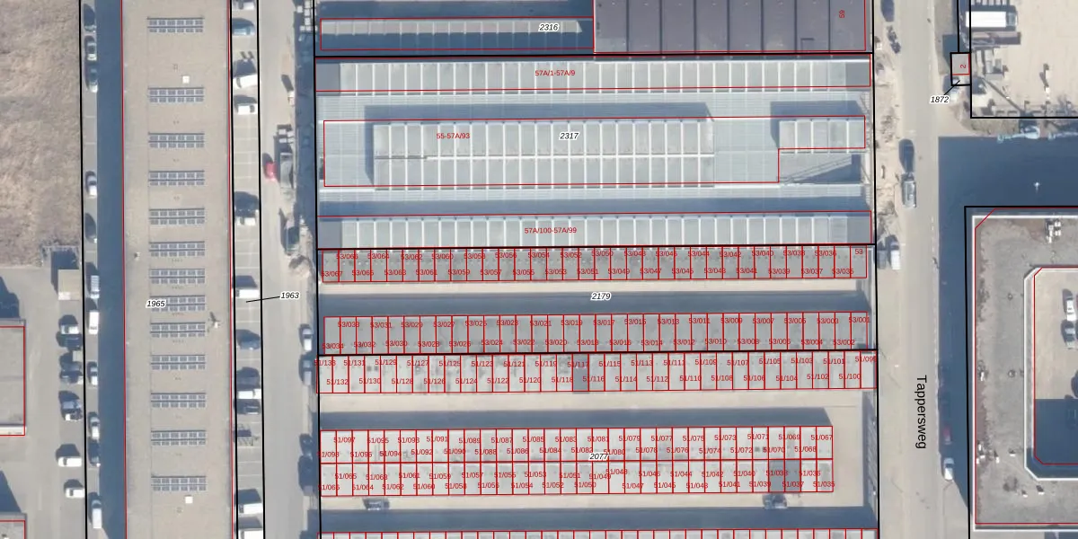 Tappersweg 53-054 is gelegen op kadastraal perceel HLM02N2179. Deze kadastrale aanduiding is uniek en wordt gebruikt door het Kadaster om eigendomsrechten en andere zakelijke rechten vast te leggen. Het perceel maakt onderdeel uit van de kadastrale gemeente Haarlem.