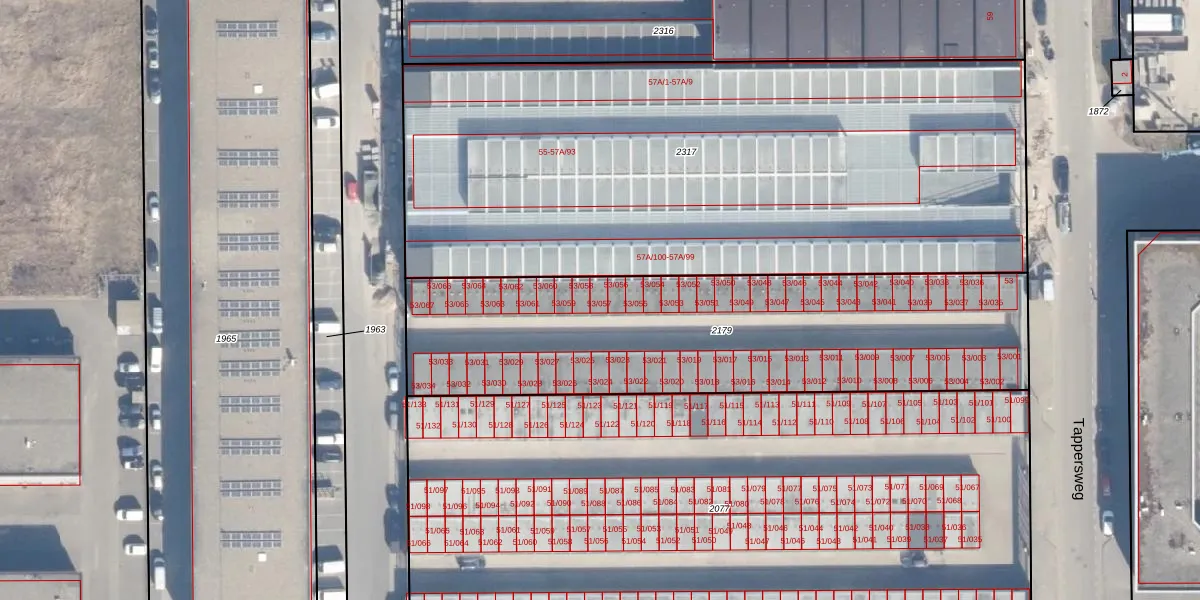Tappersweg 53-057 is gelegen op kadastraal perceel HLM02N2179. Deze kadastrale aanduiding is uniek en wordt gebruikt door het Kadaster om eigendomsrechten en andere zakelijke rechten vast te leggen. Het perceel maakt onderdeel uit van de kadastrale gemeente Haarlem.