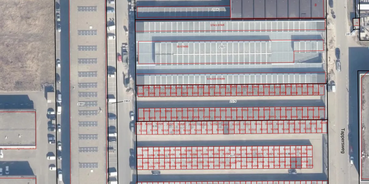 Tappersweg 53-059 is gelegen op kadastraal perceel HLM02N2179. Deze kadastrale aanduiding is uniek en wordt gebruikt door het Kadaster om eigendomsrechten en andere zakelijke rechten vast te leggen. Het perceel maakt onderdeel uit van de kadastrale gemeente Haarlem.