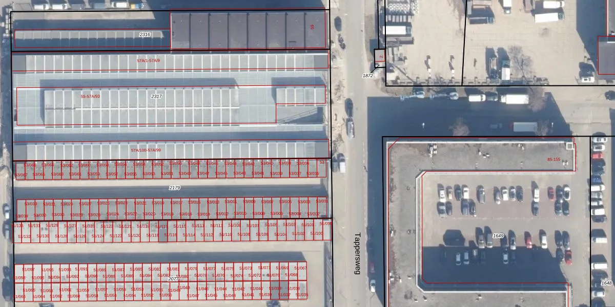 Tappersweg 57-A-209 is gelegen op kadastraal perceel HLM02N2317. Deze kadastrale aanduiding is uniek en wordt gebruikt door het Kadaster om eigendomsrechten en andere zakelijke rechten vast te leggen. Het perceel maakt onderdeel uit van de kadastrale gemeente Haarlem.
