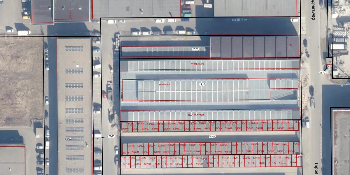 Tappersweg 57-A-85 is gelegen op kadastraal perceel HLM02N2317. Deze kadastrale aanduiding is uniek en wordt gebruikt door het Kadaster om eigendomsrechten en andere zakelijke rechten vast te leggen. Het perceel maakt onderdeel uit van de kadastrale gemeente Haarlem.
